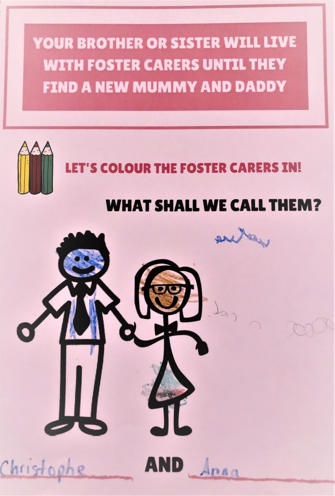 My daughter has responded to the workbook amazingly. She comes home from nursery and runs to grab it and do more pages. She shows her friends and our family her work with such pride. It’s also successfully been used in her sessions with our social worker. We often find her telling her friends’ parents about foster carers or explaining ‘tummy mummy’ to her grandparents. I just sit there with tears in my eyes beaming with pride.